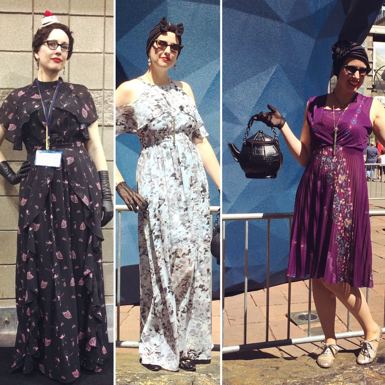 pop culture Outfits for Denver Pop Culture Convention 2019 Maxi Dresses & Purple! By retrorack.blogspot.com Published On :: Wed, 07 Aug 2019 18:47:00 +0000 Here are all the outfits I wore in Denver recently. I was mostly pleased that I managed to wear the right clothes for the weather... always a risk when packing. And never easy with an event of a Comic Con size.Day One: Black with Pink Print Maxi Dress from eShakti Hat was made for me by a fan.Dress is from eShakti. Yes it has pockets! (Remember you can make many of their dresses into a maxi dress if you like.)Leather gloves are vintage. Similar on Amazon.Day Two: Blue Pattern Maxi Dress Maxi dress on sale from Nordstrom Rack.Mesh gloves from Amazon.Teapot Bag from Amazon.Turban hat from Amazon.Sunglasses from Amazon. Day Three: Purple Pattern Pleated Day Dress Day dress is vintage 1970s.Mesh gloves from Amazon.Teapot Bag from Amazon.Turban hat from Amazon.Sunglasses from Amazon. Retro Rack is also on facebook where I post additional images and fashion thoughts.You can shop my recommendations via the following lists: Steampunk, Retro Jewelry, Makeup, Retro Clothes, LifestyleProduct links on this blog are usually to Amazon using my associate code. At no additional cost to you this means I get a slight kick back if you make a purchase. Thank you! This allows me to continue to produce this blog without sponsors. Full Article black bag blue pattern day dresses maxi dress prints purple teapot bag teapot purse
