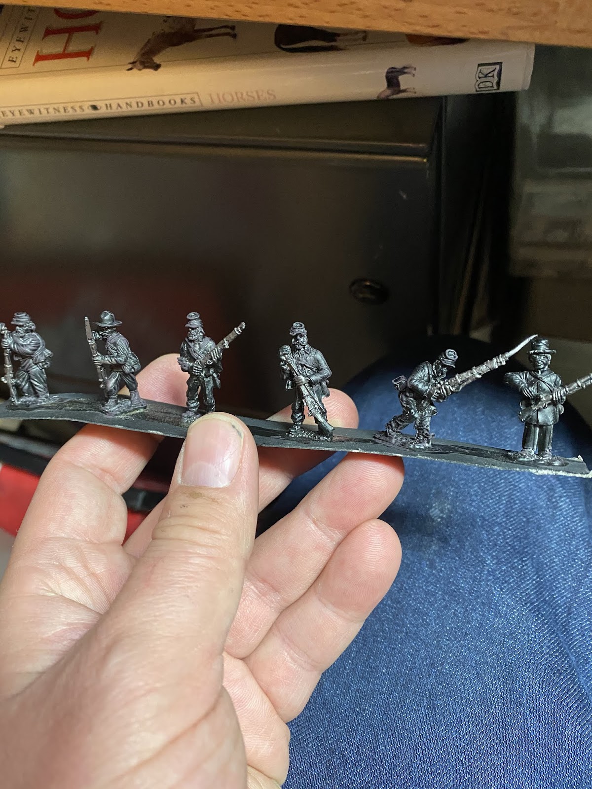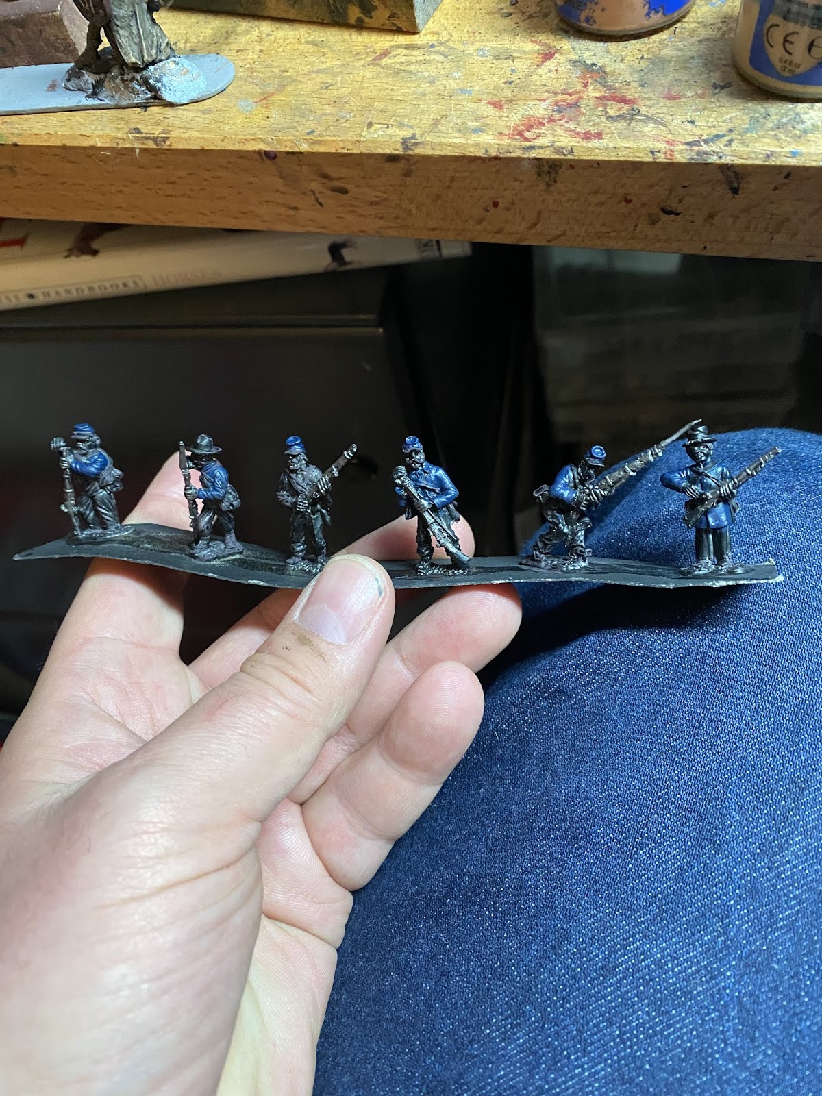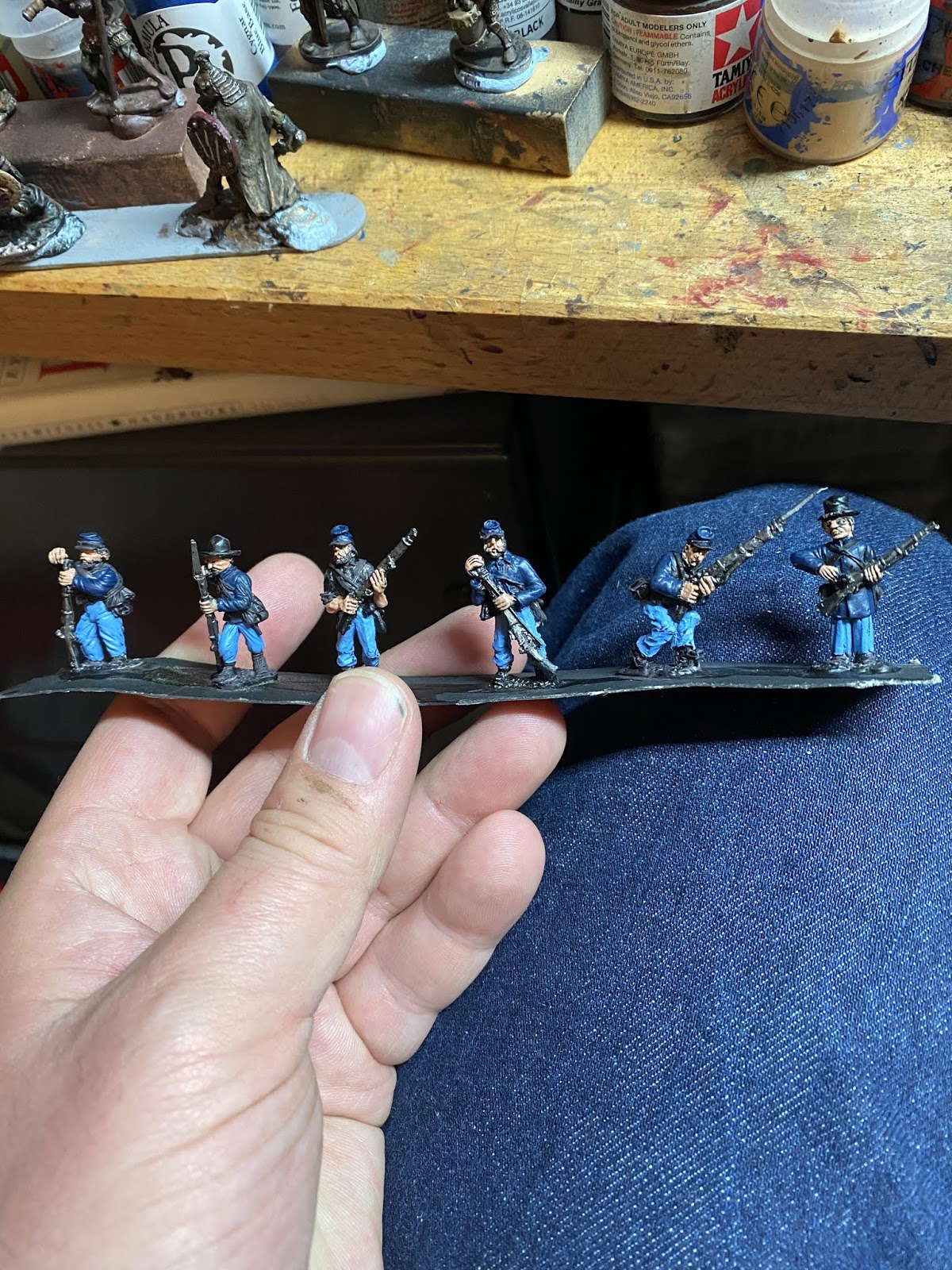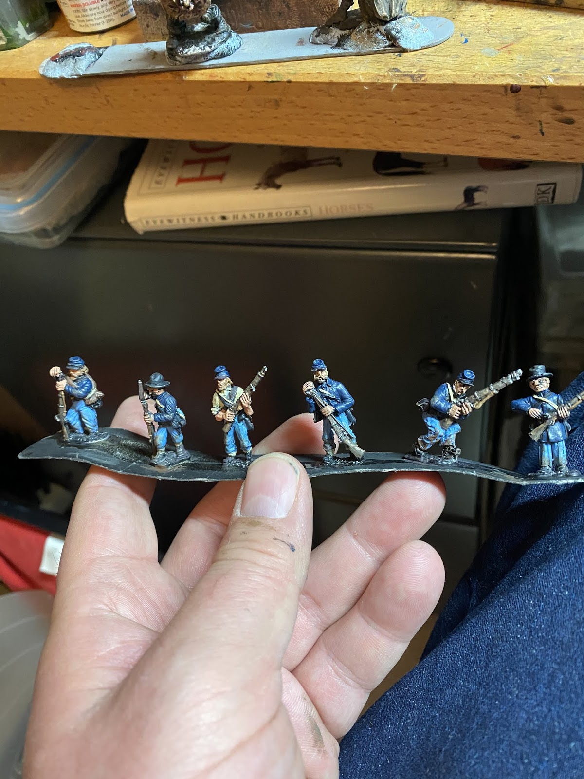 speed Speed paint challenge ACW By iron-mitten.blogspot.com Published On :: Sat, 11 Apr 2020 20:44:00 +0000 I gave myself a challenge tonight of seeing how quick I could paint some ACW soldiers to a standard I’d be happy to game with. I started off with a black under coat and added single colours to block out the uniform. I forced myself to just use one coat colour ( Foundry Union uniform B), I found later this can be dry-brushed with earth brown and this acts as a highlight. The soldiers are rough and ready campaign guys, so mud and dust was added to them.Also, I love the fact that the varnish is as hard as nails and will protect them from knocks and scrapes. My last lot, because of the number of them, I just matte varnished without any gloss or floor varnish underneath. This didn’t sit well with me and I’m a lot happier knowing this lot have been dipped. As with the ECW lot, the flesh is the only paint I allowed myself to use two colours on. It made such a difference it was a ‘no brainer’. Skin tone under Army Painter needs two colours I think, as sometimes without, it can loose something and the men appear a little lifeless. Well after the quick blocking in and weathering I gave them a brush with the Army Painter strong tone. The results were very pleasing, a lot better than the photos do justice really.For the American Civil War you need a lot of men unless of course you are using skirmishing rules. This I think has to be the route for me now with all of of my big projects, the results are quick and still pleasing. It’s also nice to force yourself into new ways of working which helps keep the hobby fresh and rewarding. I think that is a good word to use for the Dip, rewarding. Seeing those bags of figures in draws get a lick of paint on them and become units and thus, usable. We’ll have to see how they turn out when they’re matte varnishedThis lot must have taken me an hour maybe a bit less. The brown tone works well on these guys but should be even better on the soft greys and browns of the Confederate army. Full Article American Civil War Dip