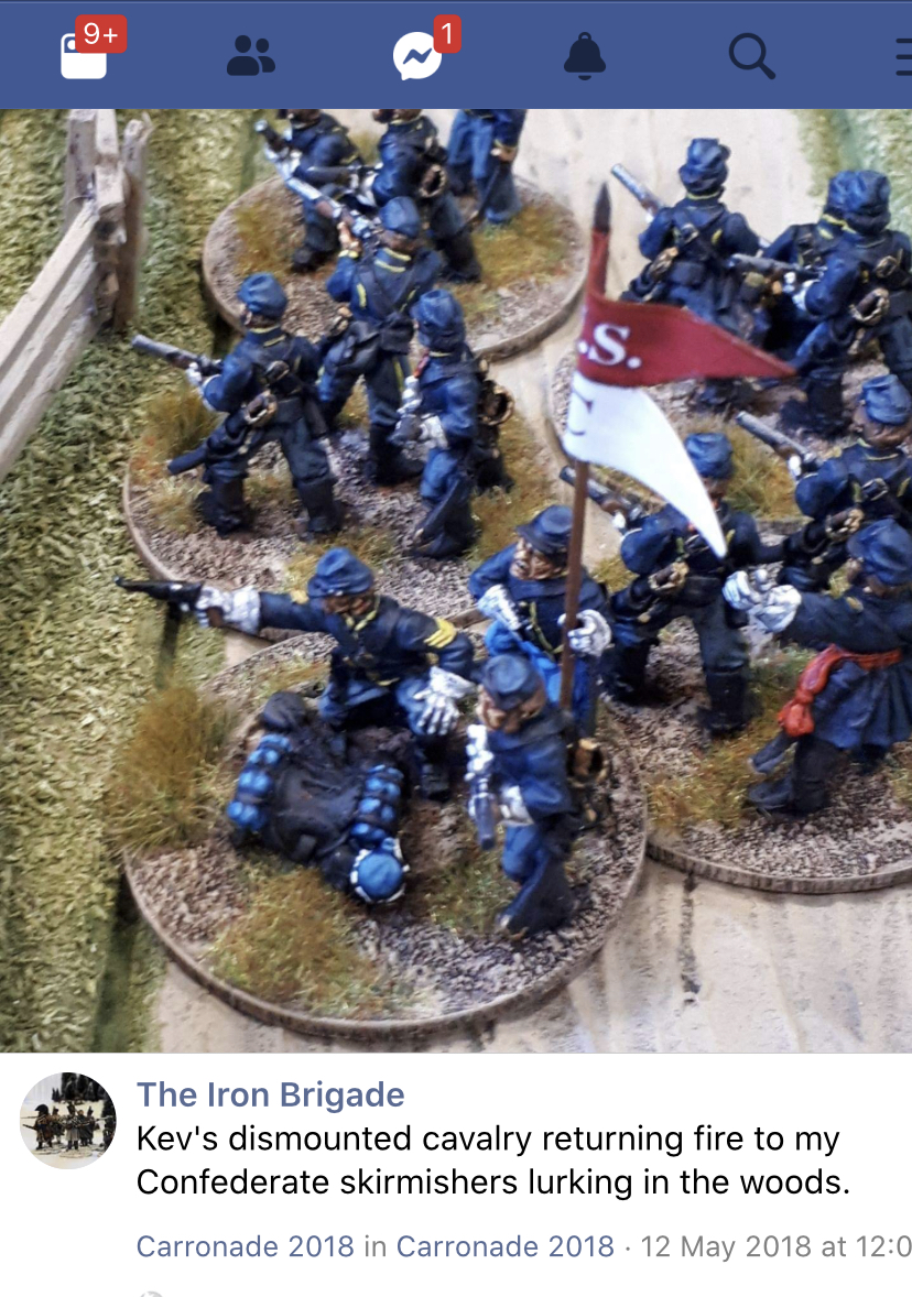 rules Researching Bonnie Blue Flag rules By iron-mitten.blogspot.com Published On :: Mon, 27 Apr 2020 13:58:00 +0000 A while back I bought a copy of ‘Bonnie Blue Flag’ from Cavalier books and I have to say I really liked what I saw. The rules seem to give me everything I was looking for in a ACW rule set, I decided then even though I must have 15 plus ACW rule sets, this was going to be the one for me. I became a Kevin Calder fanboy over night and quickly snapped up his other Sudan rule set too. I constantly patrol Cavalier books looking out for any other variants of the rule set that may of been released. Although, the rules are so adaptable that you could use them for a multitude of other eras.The only down side though is that because they are a small rule set by Cavalier Books there doesn’t seem to be much support for them. This lead me to do my own research to clean details, however small, from the internet to help outline some of the rules in the book. A big break through came when I found Kevins blog ‘The Iron Brigade’. This was full of nice pictures of his games which gave loads of extra details into the system. I have created this post on here so I can dump any relevant information to save me trolling around in the future. Other like minded souls had made the same connection and had gone to the Facebook site to ask questions, these were not answered though. So here I have gathered images from various games Kevin has done and each one is a wealth of extra information and details for the rule set.A Crazed stalker raids the internet for more information. It’s interesting to see here the use of skirmishers. They are kept on the table and placed around the parent unit at all times, unless destroyed. This wasn’t made very clear in the rule book, I thought you just took them off once they rejoined their regiment. It’s also good to see the mini dice in play. I think pictures like this would of been a better choice rather than the stock Cavalier book ACW illustrations in the rule book. It would of really helped define things. Also, Cavalier Books released another set of ACW rules and included the same illustrations... a bit poor I thought. This is interesting, dismounted cavalry on 40mm round bases. This shows their looser structure on the field. This is a nice touch and gave me some good ideas about basing units of sharpshooters. Everybody knows the green clad Berdan’s sharpshooters, but by basing up a Confederate unit of marksman in this way would really help define them from the other units. A photo taken from a Napoleonic battle hosted by Kevin, it again shows that with a few minor weapon range tweaks, these rules can be used for most horse and musket periods. I also noticed in one of these games that skirmishers could be based two to a base rather than singly. This is quite helpful to me as single figures are quite hard to store and keep safe. Two figures on a 40mm base are a lot more stable and also give the chance of a diorama.Also interesting that this small unit of sharpshooters only has one skirmisher rather than three to reflect its small size. I will tag this post and keep adding to it, if and when I find out anything new. These rules are great and well worth a look.Below is a great picture showing the game in process. Note that some skirmishers have been based as units of ‘comrades in arms’, multiple figures in groups of skirmishers, loading and firing to maintain a constant fire. This is an idea I will play with for sure. Full Article Bonnie Blue Flag