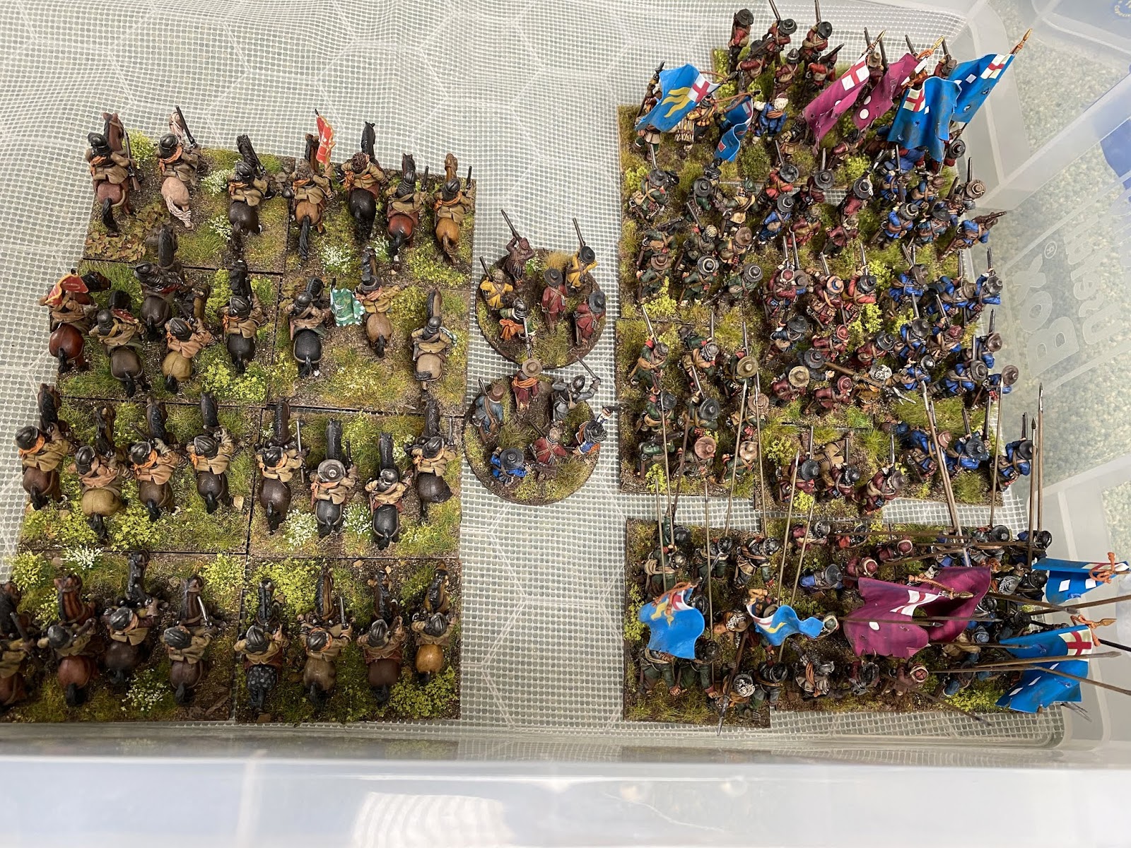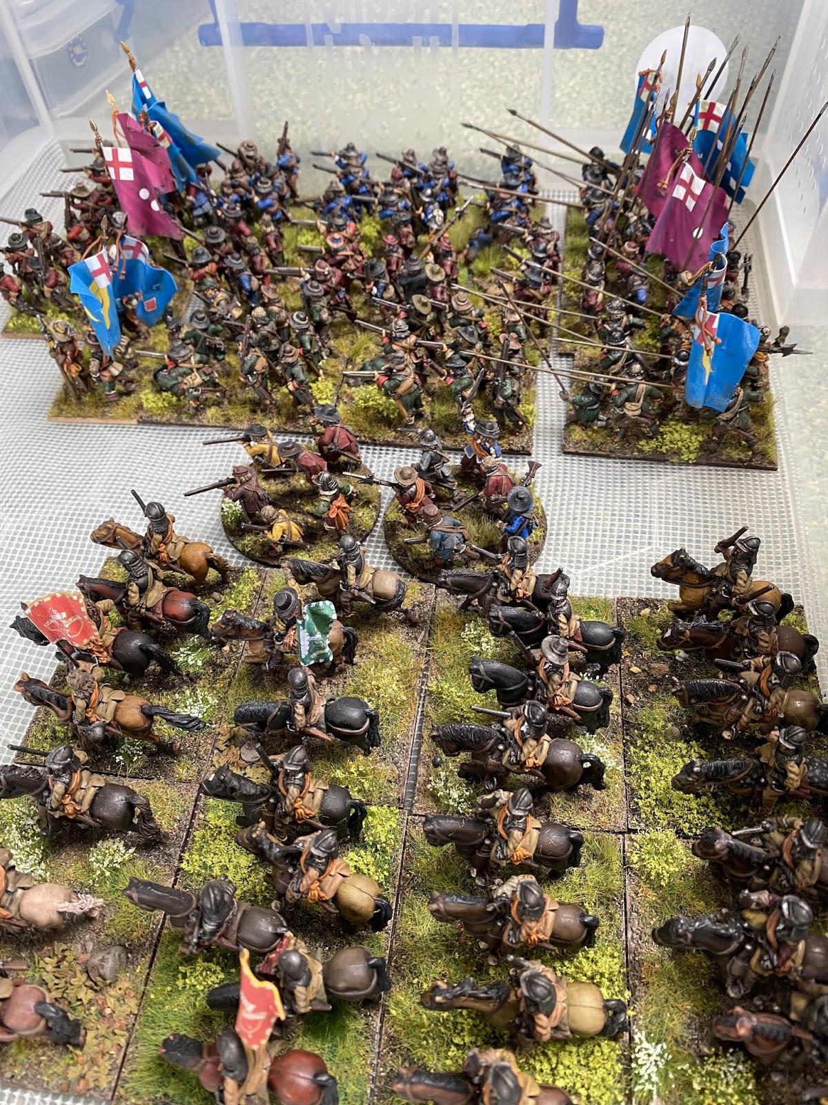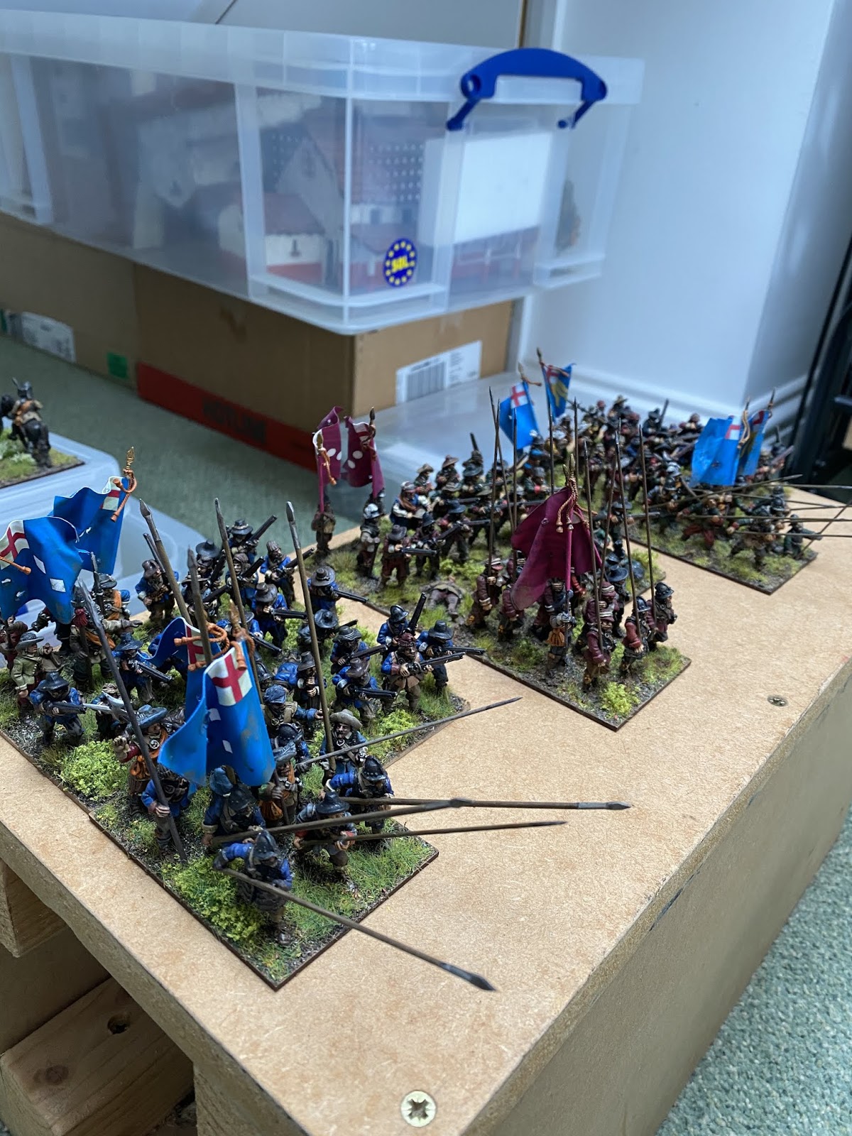 army ECW Army so Far By iron-mitten.blogspot.com Published On :: Thu, 02 Apr 2020 11:47:00 +0000 It’s a lovely moment when you can take all your newly based stuff upstairs and combine it with your old stuff. The parliamentarian force isn’t too far off being finished now. The quick Dip Army Painter route is definitely the way forward with big armies like this. In my head I planned for four Foote Regiments to make up a starter force, just need to finish the red regiment and I’ll be there. Full Article English Civil War