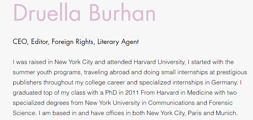 pig Beware: Pigeon House Literary / Druella Burhan By feedproxy.google.com Published On :: Fri, 13 Mar 2020 18:27:00 +0000 Posted by Victoria Strauss for Writer Beware® The internet and social media have transformed writer/agent/publisher interactions in many ways, one of which is the proliferation of Twitter pitch events, such as #PitMad, #DVPit, and others.While no online innovation has (so far) managed to supplant the traditional query-and request route, these events do attract plenty of reputable agents and publishers--unlike other purported shortcuts (*cough*Publishizer*cough*). However, inevitably, they are also stalked by marginals, amateurs, and even scammers.For instance, Eliezer Tristan Publishing, which charged a $500 fee and went out of business just months after opening up, haunted #PitMad. Ditto for GenZ publishing, which charges authors $2,500. Burchette and Ferguson, a brand-new publisher staffed by people with zero relevant experience, participated in pitch events before they even launched (and went out of business shortly thereafter).Then there's this:I've gotten many, many other questions about approaches by dubious companies and individuals as a result of pitch events. All in all, therefore, it pays to be careful, and if you haven't heard of an individual or publisher who approaches you, to research them before responding. (You can contact me; I may have heard something.)Which leads me to the subject of today's post. I might not normally devote an entire blog post to one marginal agent, but this one is such an egregious example, and seems to be so active on social media--including #PitMad--that I think she's worth a special feature.Pigeon House Literary Agency launched just this past February. It's run by Druella Burhan, whose resume includes none (zero, zip) of the relevant background experience you typically want to see from a new literary agent--such as a professional writing resume, or having previously worked for a reputable agency or publisher.The lofty claims Burhan does make are either unverifiable, or provably false. For instance, here's Harvard Medical's publication on its 2011 MD-PhD graduates. Surprise! There's no mention of Druella Burhan.Here's some of Burhan's agenting philosophy:The logo (for lack of a better word) at the top of this post provides a preview of the rest of the Pigeon House site (a Wix freebie), which is amateurishly formatted and clearly not proofread (several pages have fully-justified text, with words cut off at the end of lines--I mean, it's a Wix freebie, it's not like you have to be an expert to get it right) and rife with typos, grammatical errors, and bizarre word use. For instance,That's bad, but here's what it originally looked like. Burhan changed it shortly after I tweeted about it:There's more: the Who We Are page, which bafflingly proclaims that the agency will "strive to bring a supreme appealingness and picturesque style of books from darkness to life"; the Foreign Rights page, which erroneously cautions writers that "If a literary agent does not agree to take you on as an international client/author, you will not be able to sell books overseas"; the Referrals page, where Burhan bizarrely invites other agents to send her clients. And here's the contract she is sending out, which includes the same formatting/proofreading errors as her website, and is really just an embarrassment.It's a perfect carnival of amateurism.Am I being mean here? Maybe, but before you whip out the "everyone has to start somewhere" argument, consider Burhan's false claims about herself and her aggressive use of social media to recruit clients despite her obvious ignorance and complete lack of relevant qualifications (I first heard of her because she was trolling on Reddit, and she is actively inviting queries on her Twitter feed).The damage an amateur agent can do is considerable--squandering clients' chances with substandard submissions, submitting to disreputable or incompetent publishers, inadequately understanding publishing contract language and therefore not capable of effectively negotiating it. An amateur agent may not drain a writer's bank account the way a scammer would, but the bottom line isn't that different: no sale, and lots of wasted time.Writer Beware. Full Article